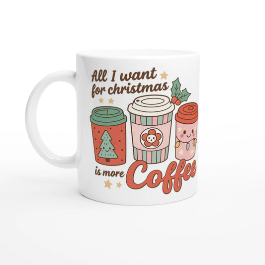Christmas Mug - Cozy 'All I Want for Christmas is More Coffee' Ceramic Coffee Cup