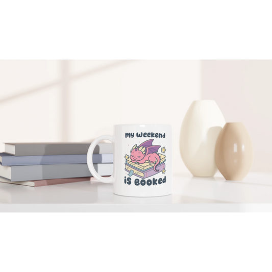 Bookish Dragon Sleepy Reading Mug – My Weekend is all Booked Trendy 11oz Ceramic Design