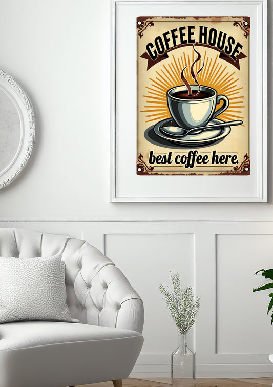 offee House Wall Art Printable | Vintage Cafe Sign | “Best Coffee Here” Retro Poster | Digital Download | Rustic Kitchen Decor