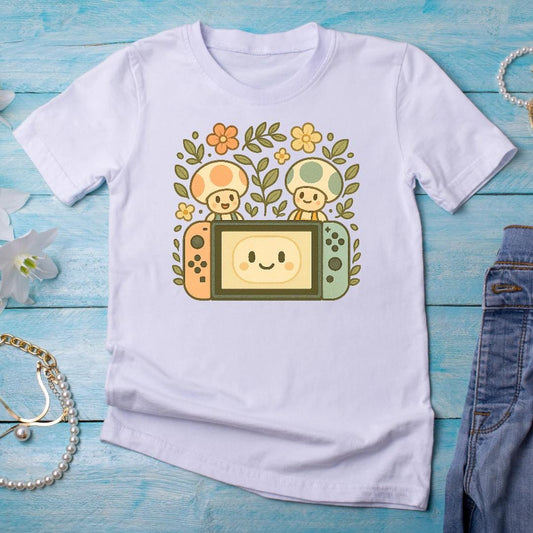 Pastel Gamer PNG | Cozy Gaming Digital Sticker | Kawaii Toads with Switch Clipart | Gaming Girl Aesthetic Download | Cute Gamer Art
