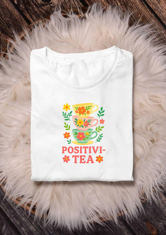Positivi-Tea Printable Wall Art | Floral Teacup Digital Poster | Kawaii Affirmation Art | Self-Care Retro Decor | Cute Motivational Download