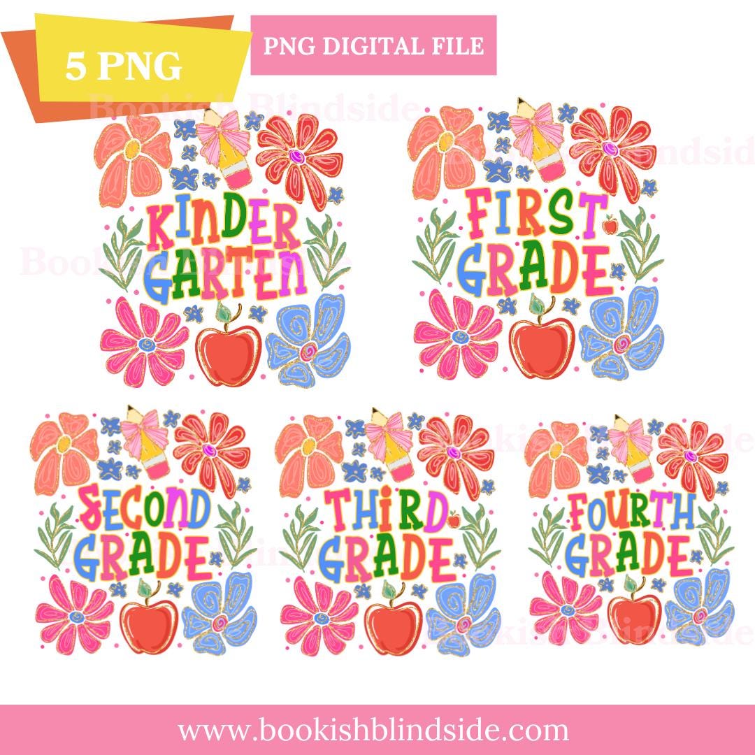 5 Grade Level PNG Bundle | Kindergarten to Fourth Grade | Back to School Digital Downloads | Floral Classroom Decor | Instant PNG Files