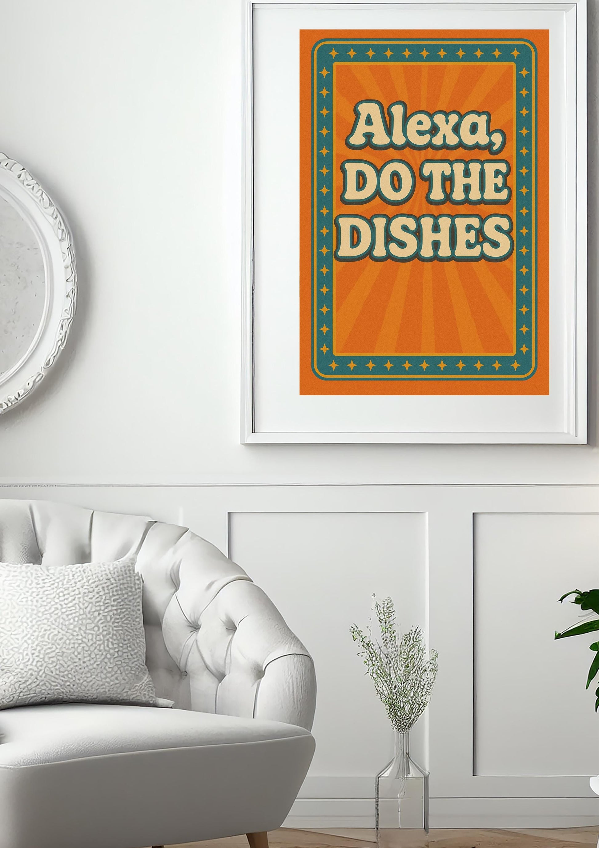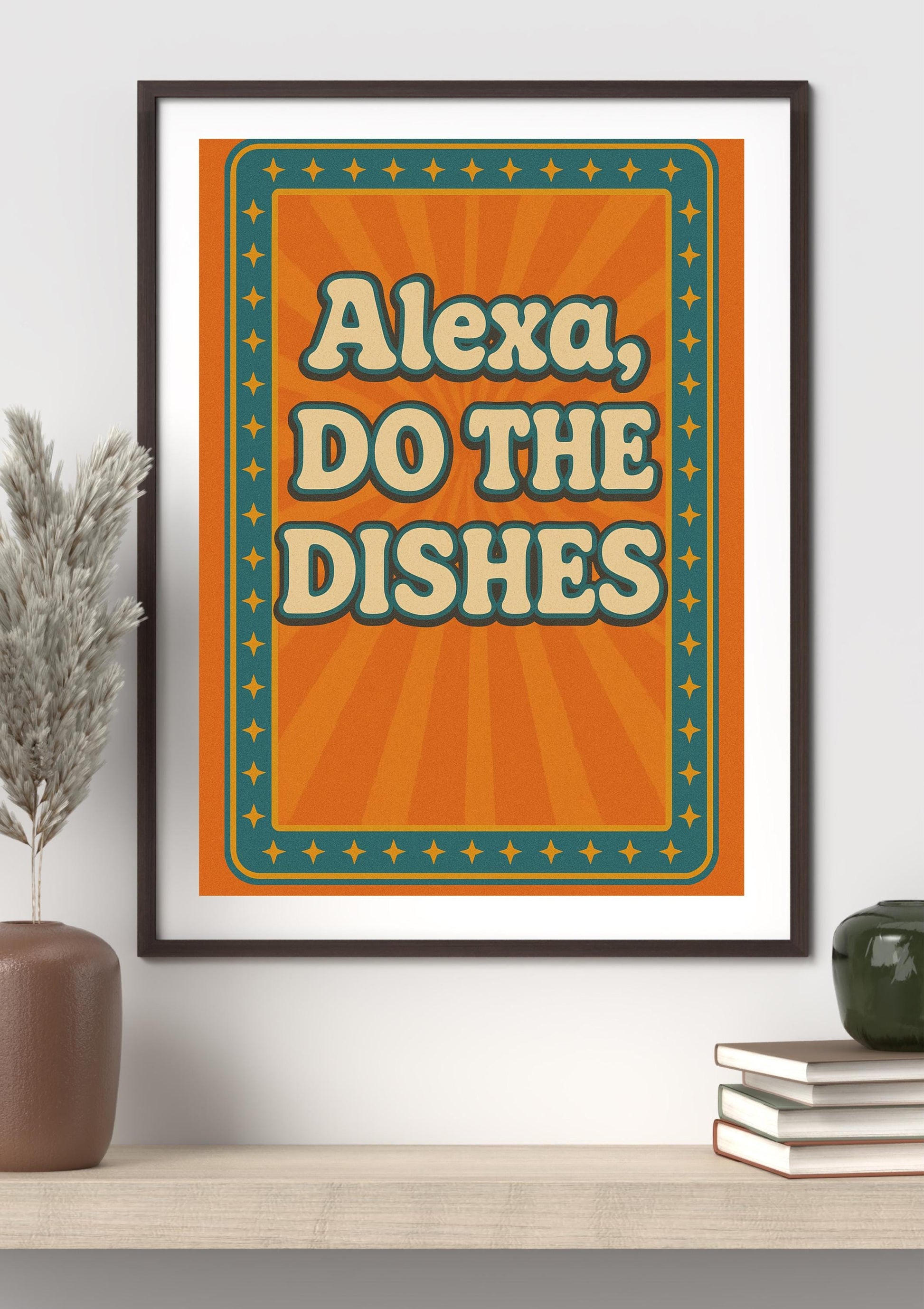 Alexa, Do the Dishes Wall Art | Funny Retro Kitchen Sign | Bold Typography Digital Print | Instant Download | Vintage Printable Poster