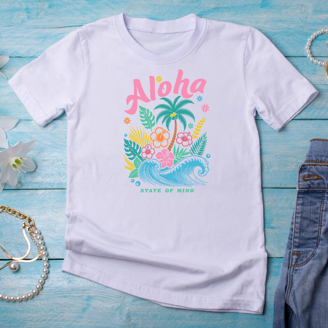 Bring sunshine to your creative projects with this vibrant "Aloha State of Mind" PNG digital file! 🌴🌺 Perfect for crafters, small business owners, and summer lovers, this high-resolution tropical design features colorful hibiscus flowers, palm trees, and ocean waves—ideal for sublimation, stickers, t-shirts, tumblers, and more.