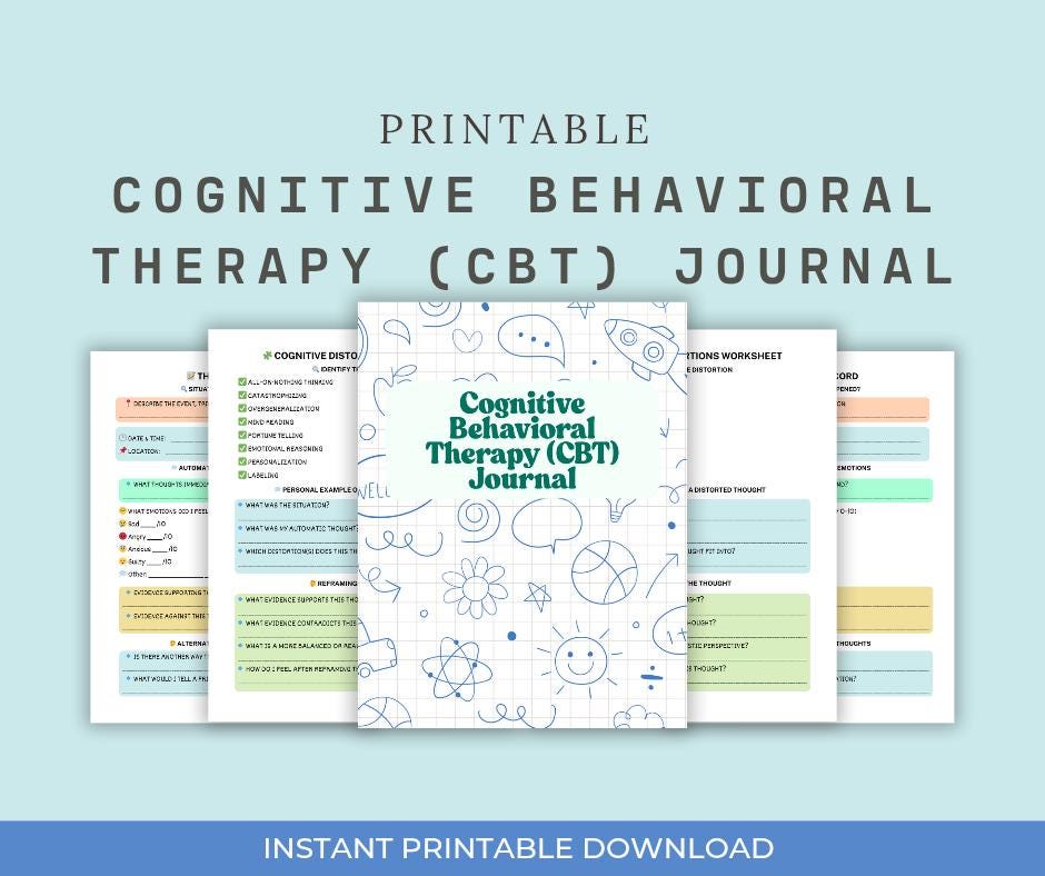 Cognitive Behavioral Therapy (CBT) Journal Digital Download | Mental Health Workbook Self-Guided Therapy Printable | Emotional Wellness