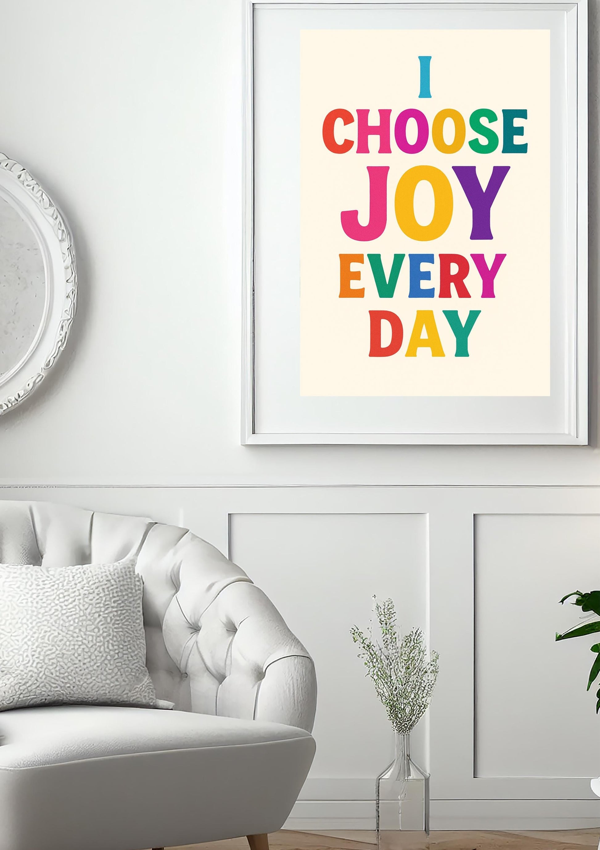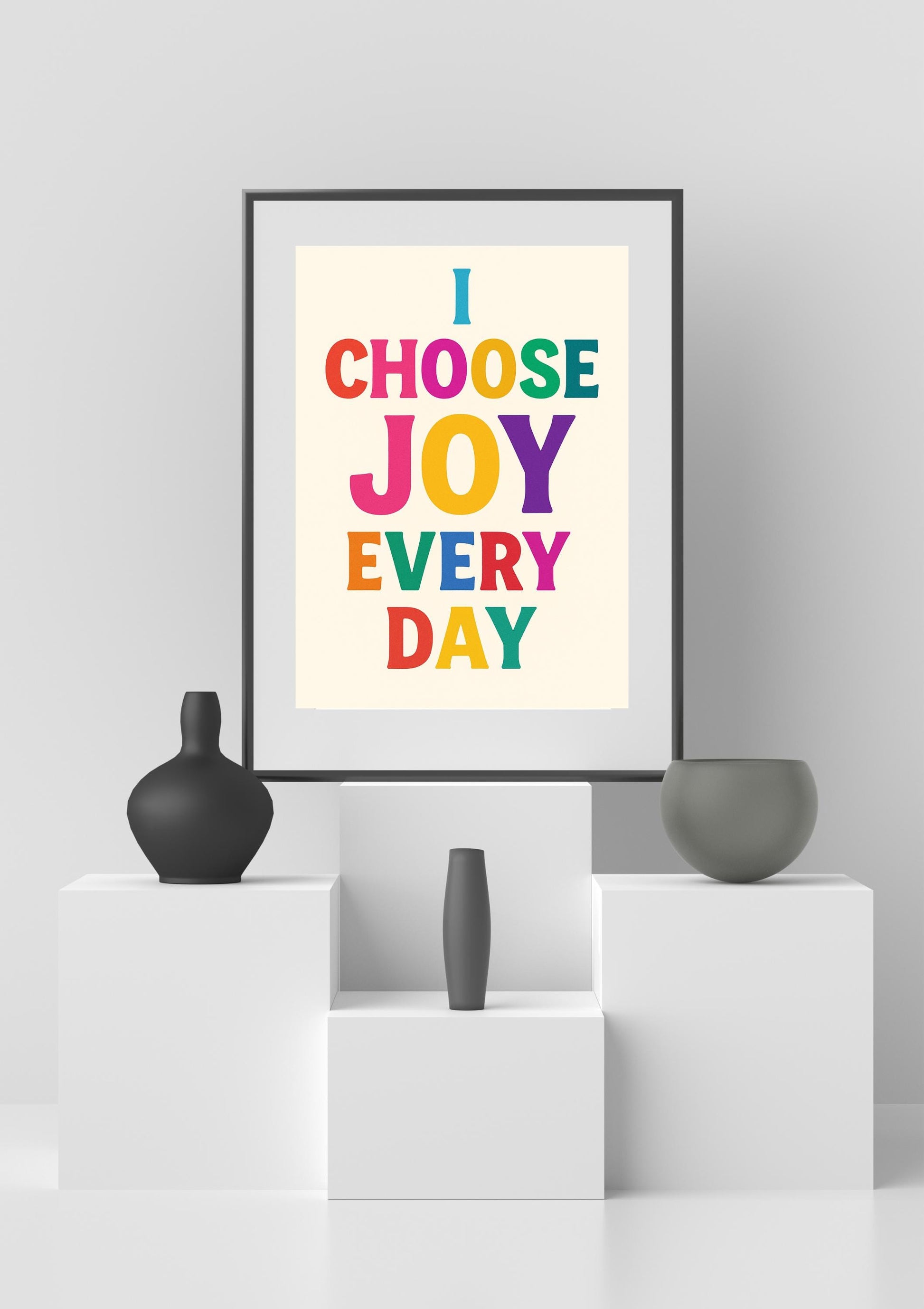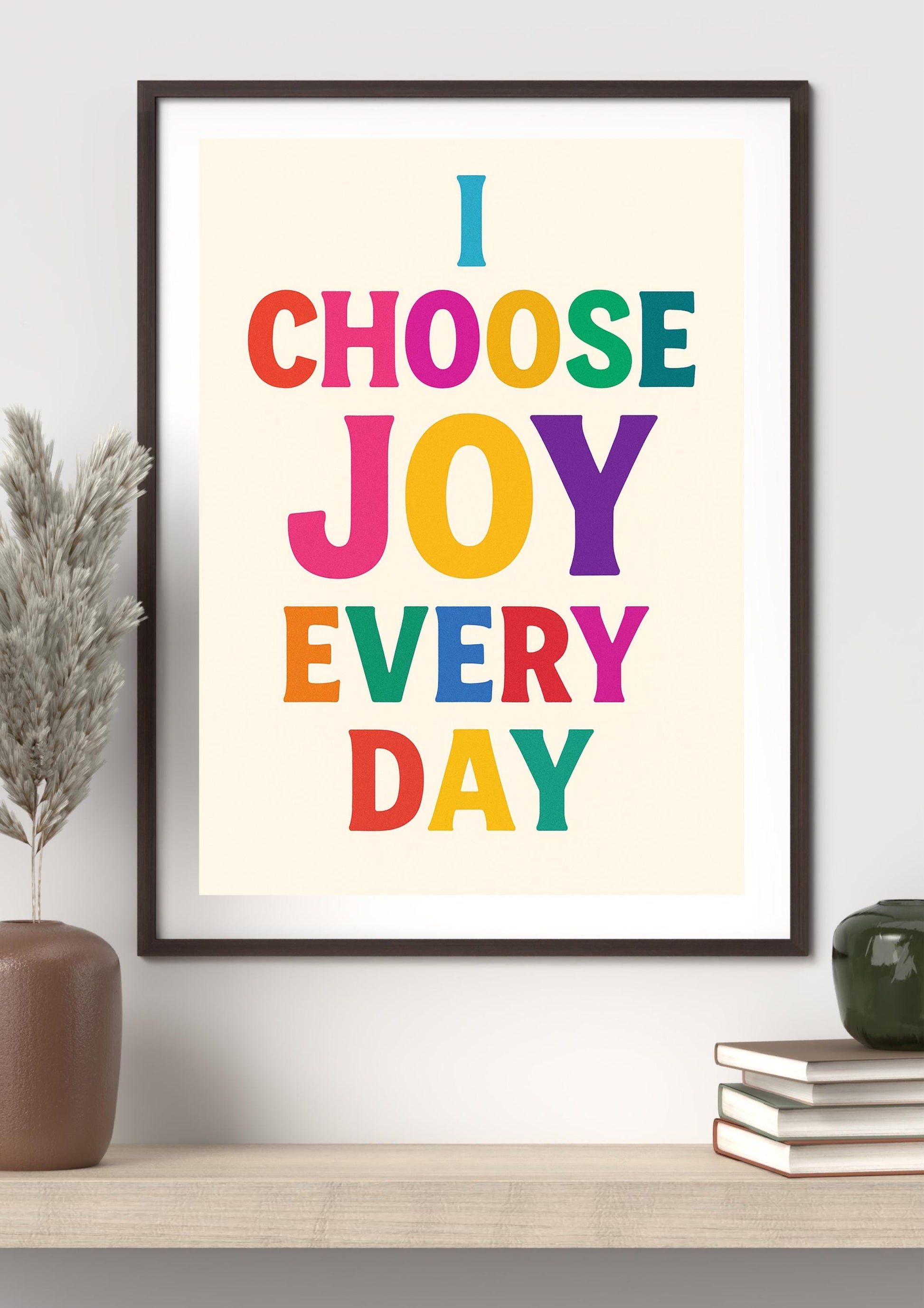 I Choose Joy Every Day Wall Art | Colorful Affirmation Printable | Retro Rainbow Quote Poster | Positive Mental Health Decor | Digital PNG