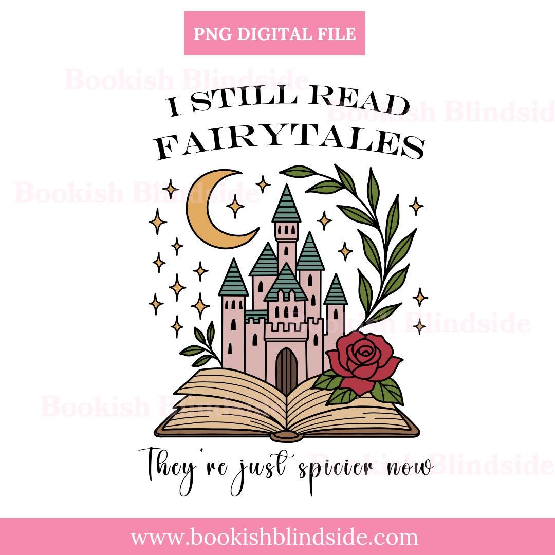 spicy book sticker png, romantasy clipart, I still read fairytales quote, digital bookish download, castle fantasy sublimation, spicy romance fan art, bookish humor png, adult fairytale design, book lover sublimation, bookish blindside