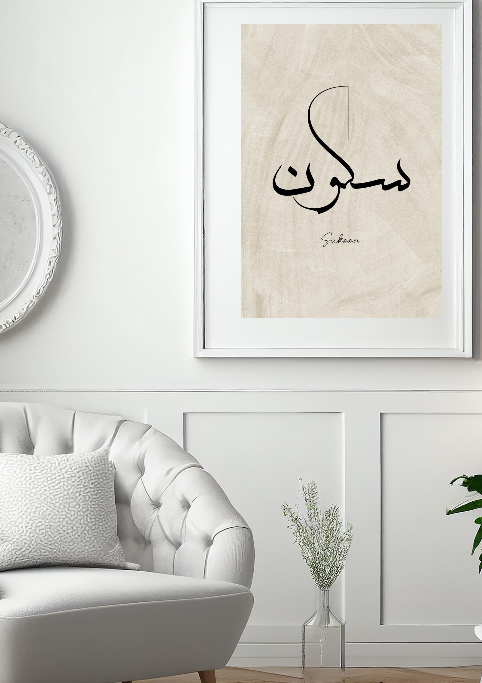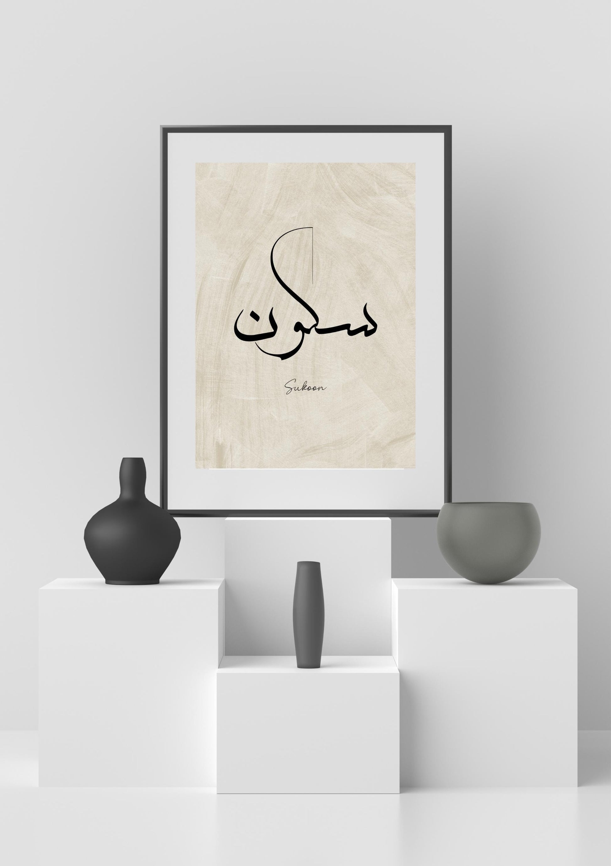 Bring tranquility into your home with this elegant "Sukoon" (Peace) Arabic calligraphy print. Designed in a minimalist style with soft neutral tones, it’s perfect for creating a serene, calming space. Whether you're decorating a prayer nook, living room, or office, this digital artwork adds a beautiful spiritual touch.