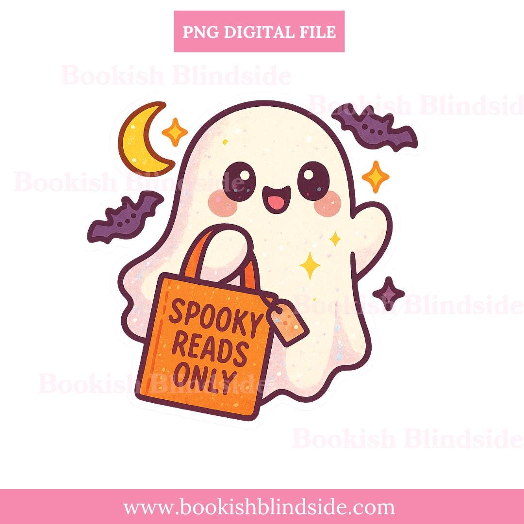 Kawaii Spooky Reads Only Ghost PNG | Cute Halloween Book Sticker | Digital Download for GoodNotes, iPad, Kindle, Book Journal | Bookish Fall