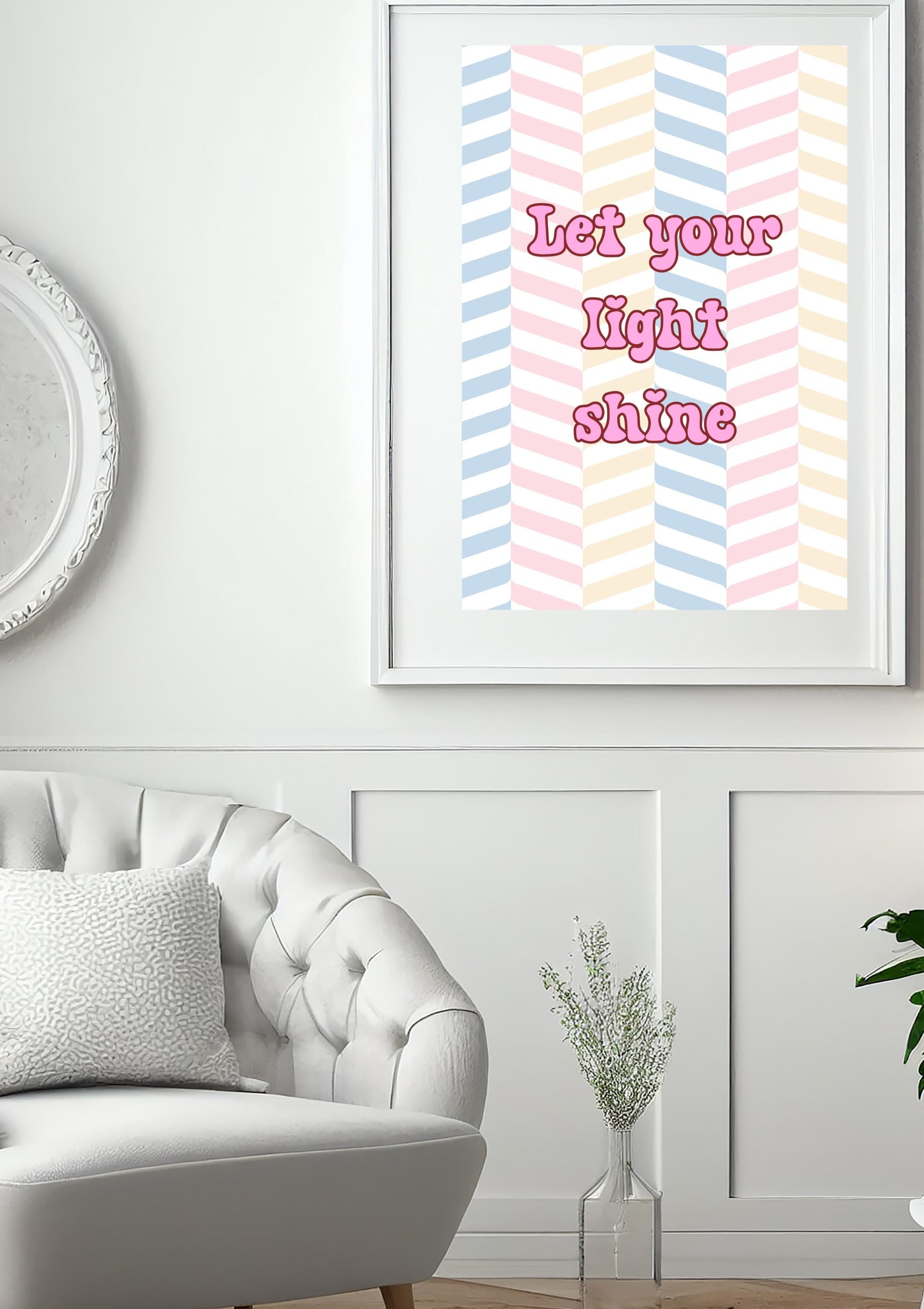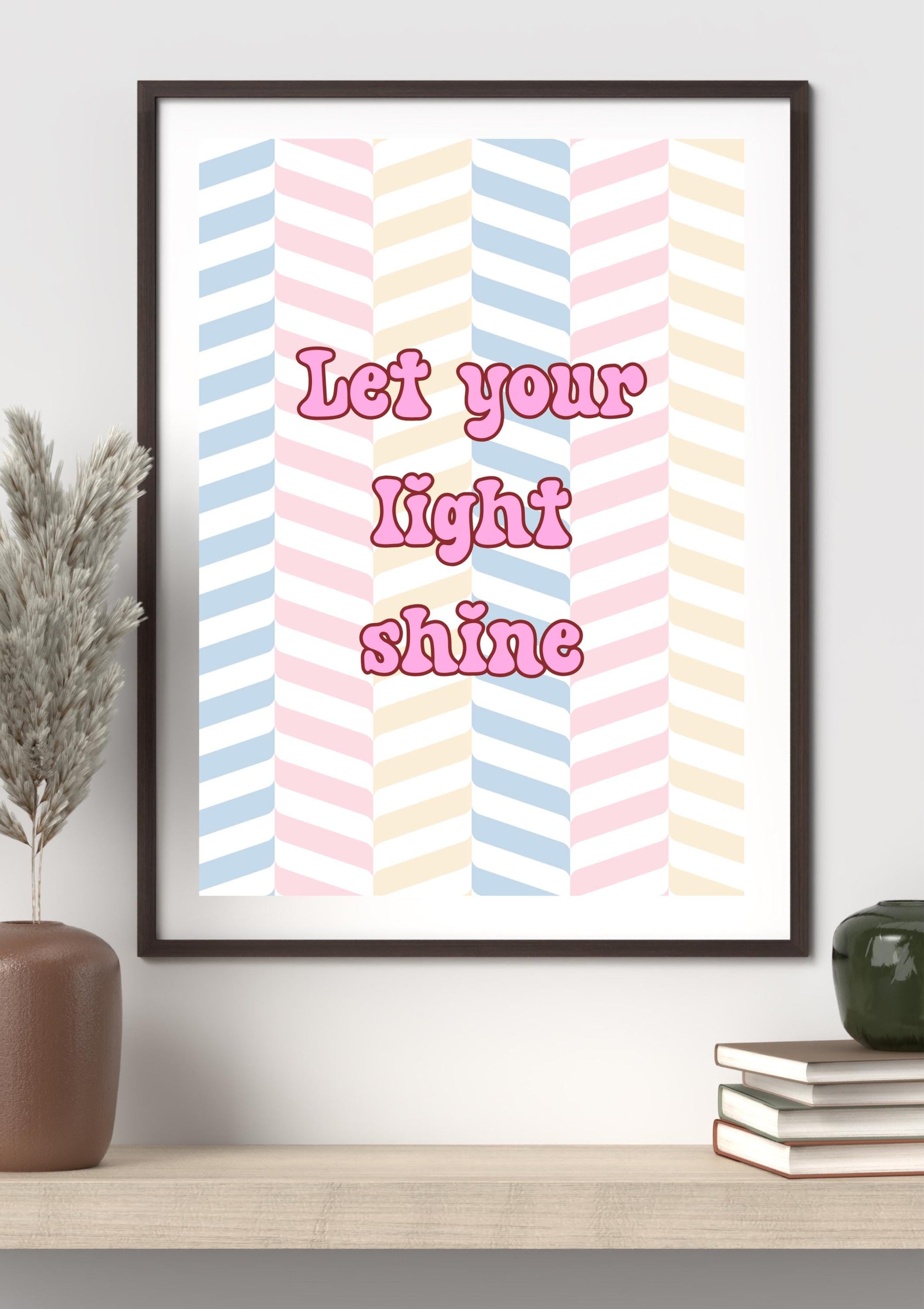 Let Your Light Shine | Retro Motivational Wall Art | Pastel Quote Poster | Digital Download for Home, Kids Room, Dorm or Office Decor