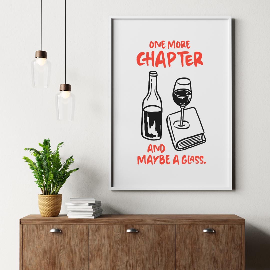 One More Chapter and Maybe a Glass PNG | Book & Wine Digital Sticker | Reading Quote Clipart | Cozy Reader Sublimation File | Instant