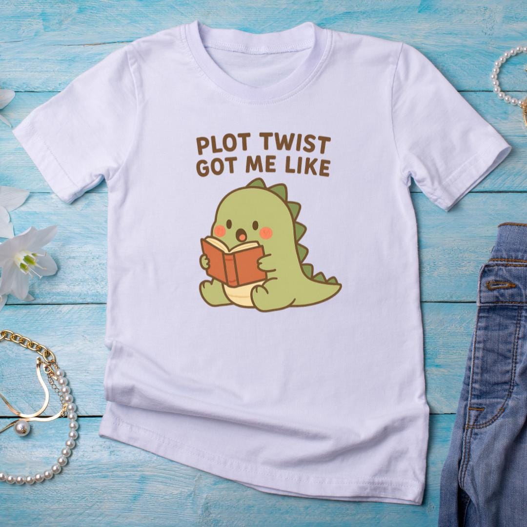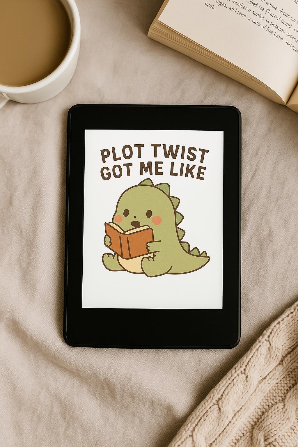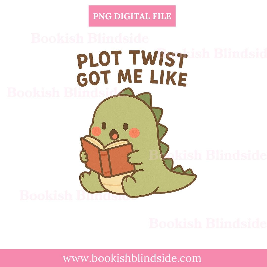 Plot Twist Got Me Like Sticker | Cute Dinosaur Reading PNG | Bookish Digital Sticker for GoodNotes, Kindle, iPad | Funny Book Lover Download