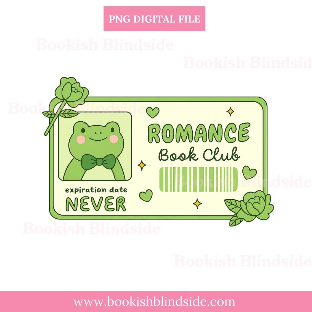 🐸 Romance Book Club ID Sticker | Cute Green Frog Bookish Vinyl PNG – Digital Download