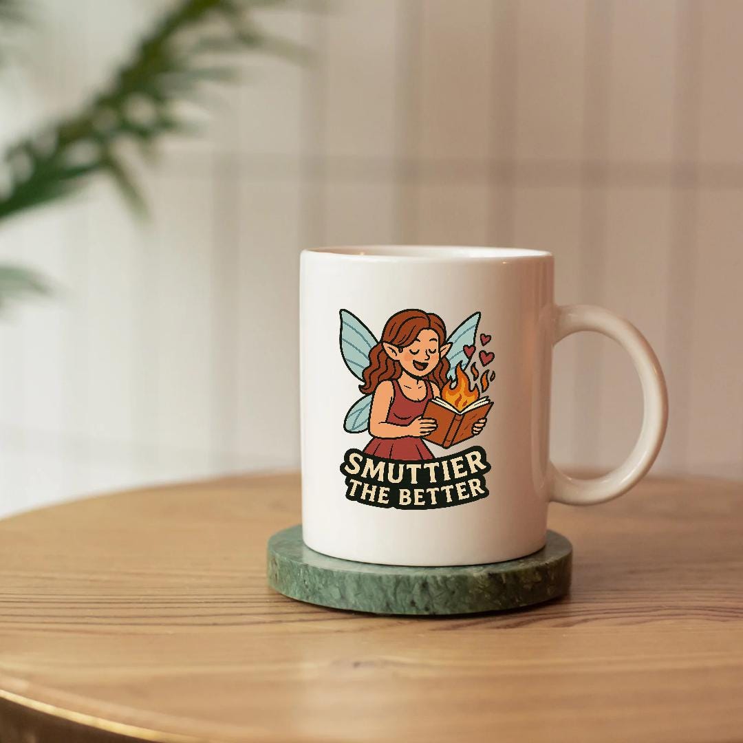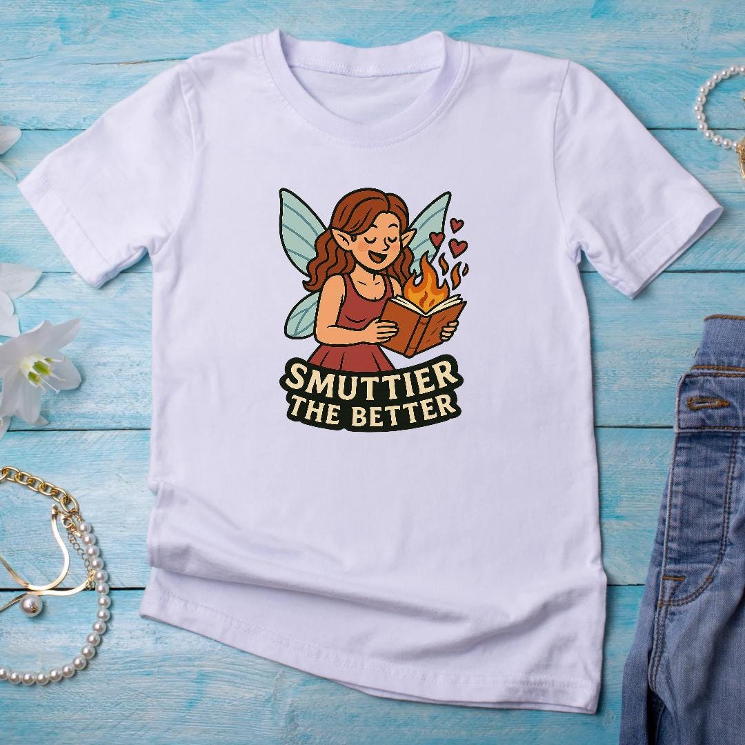Fall in love with this whimsical Book Fairy PNG – perfect for spicy book lovers and fantasy romance fans! This “Smut Tier the Better” design features a blushing fairy reading a fiery book with hearts flying and wings glowing – ideal for printing, cutting, journaling, or digital use.