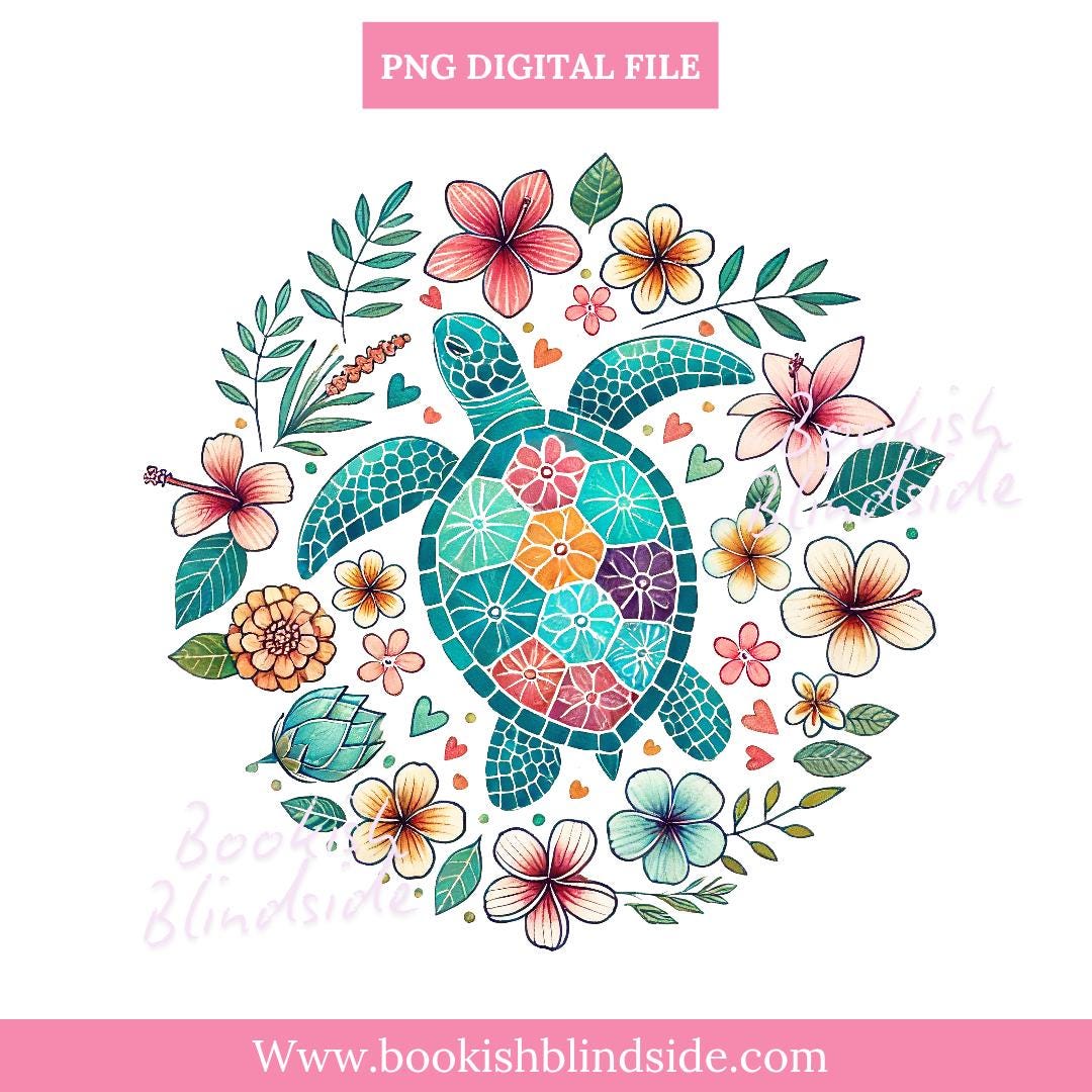 Turtle Floral PNG | Mosaic Sea Turtle Clipart Tropical Watercolor PNG | Sublimation Design for Shirts, Mugs, Wall Art & More | Digital