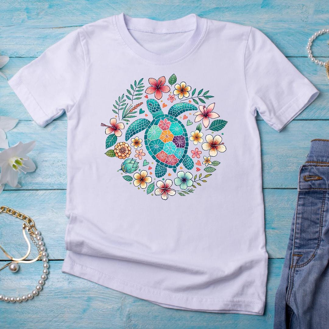 Bring the beauty of the ocean and tropical blooms to life with this stunning Turtle Floral Mosaic PNG! 🐢🌺 This intricate design features a watercolor-style turtle made of colorful mosaic patterns, surrounded by hibiscus, plumeria, and lush greenery.
