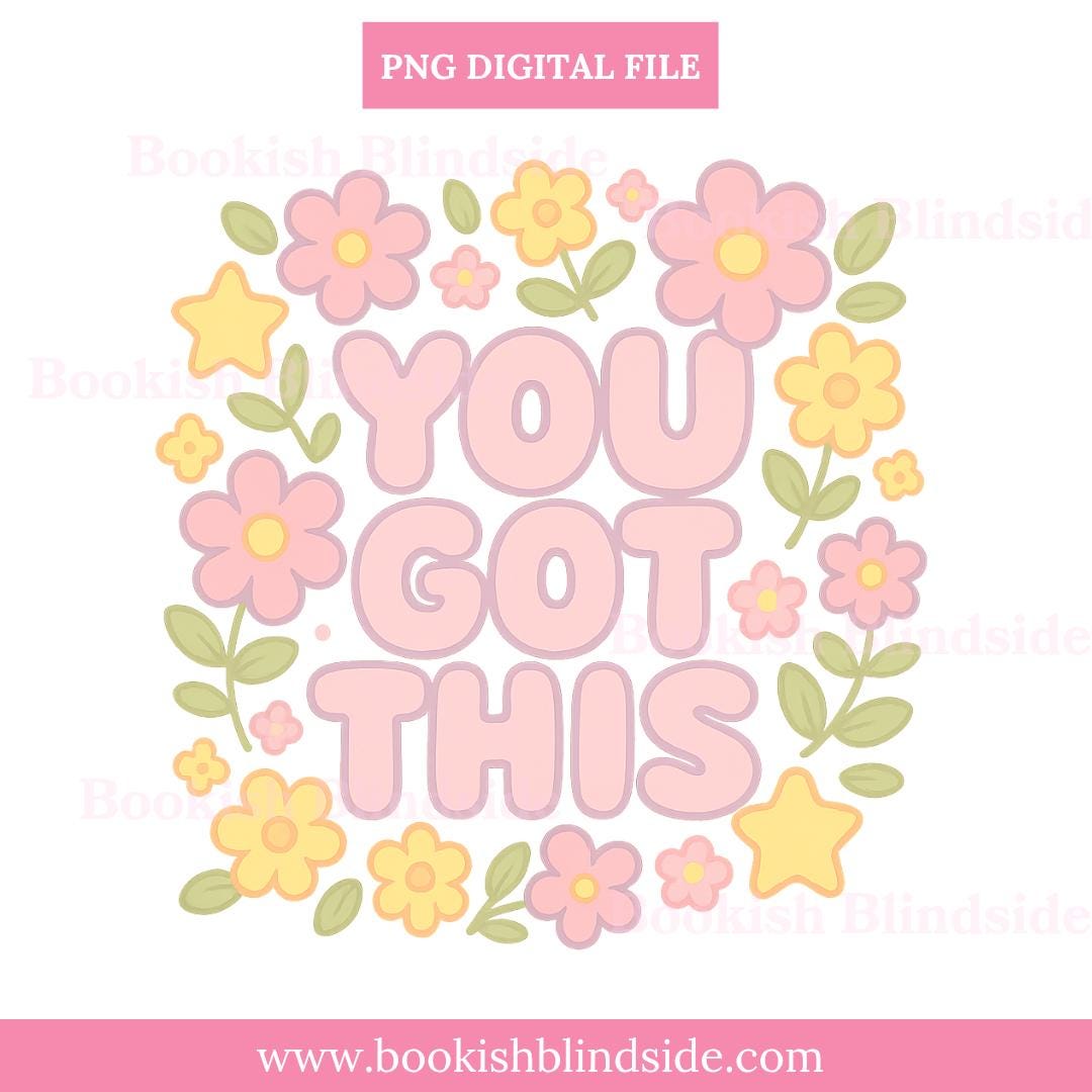 you got this png, motivational sticker png, pastel floral clipart, self care sublimation file, kawaii quote png, positive affirmation download, mental health planner sticker, cute digital design, sublimation art, bookish blindside sticker